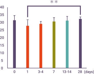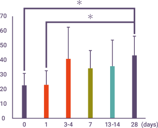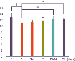 術後28日目に おいても術前と同様の分布には戻り切っていない。