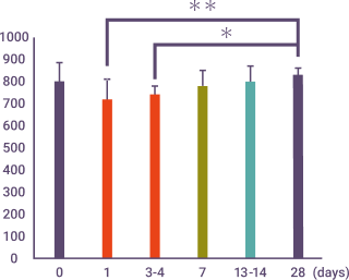術後28日目に おいても術前と同様の分布には戻り切っていない。